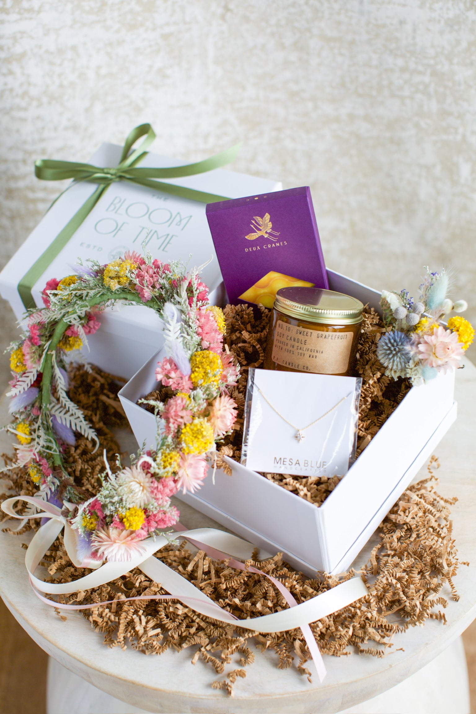 Packaged in our signature keepsake box with a petite dried floral bouquet