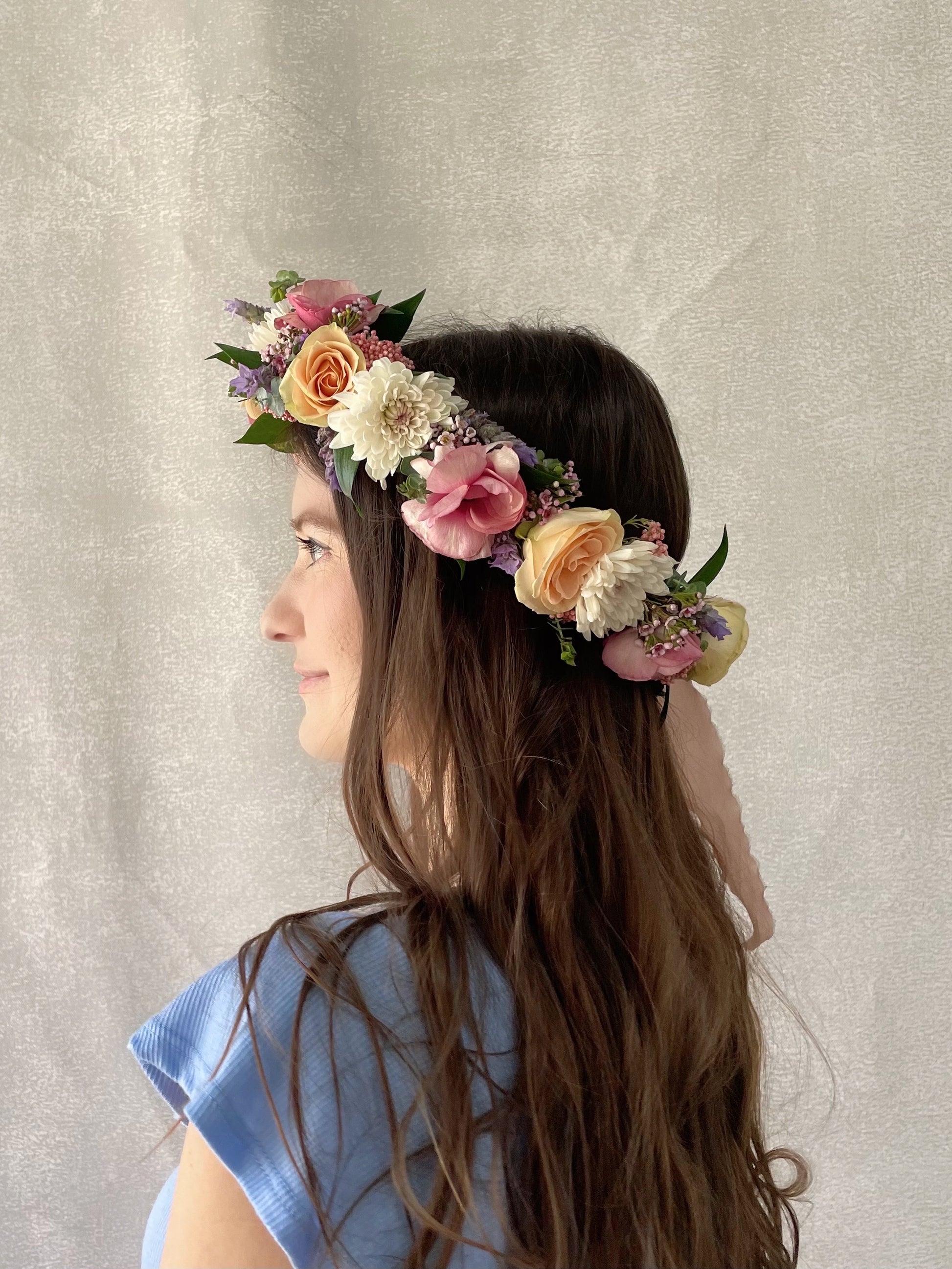 Make any day a special day with a fresh flower crown. Please include any preferences on color/style upon checkout.